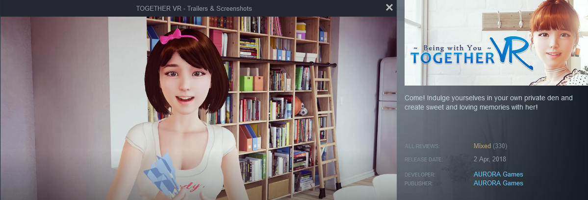 AURORA Games also released Together BnB , a similar VR adult game aimed more at Western audiences.