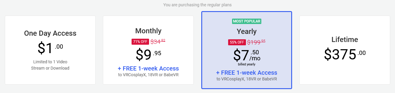 BaDoinkVR offers four premium solutions to subscribers, including a one-day access package for $1, perfect for testing the platform before deciding on an extended-period subscription: