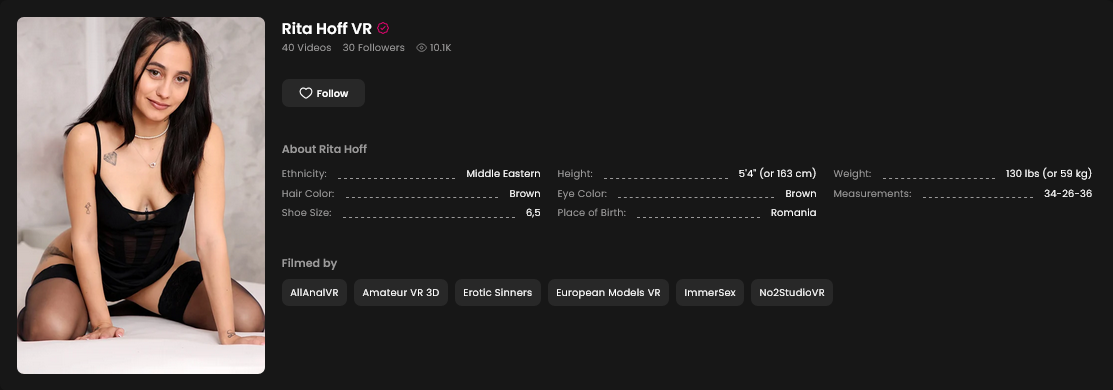 Rita Hoff is a pornstar with 40 videos on the VR Smash website.